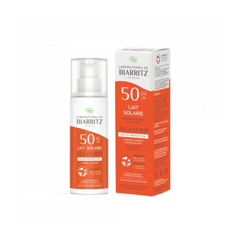 Le Lait solaire assure une haute protection naturelle grâce à ses écrans minéraux anti-UVA/UVB et à son extrait breveté d’algue rouge Alga-Gorria , puissant antioxydant qui neutralise les radicaux libres pour prévenir les dommages cellulaire et le vieillissement cutané induits par les rayonnement solaire.