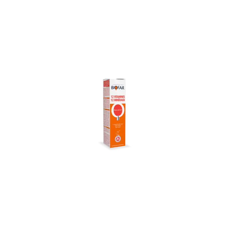 La fatigue est le mal du siècle, conséquence des vies à 100 km/h que nous menons. Vous la ressentez ? Les Laboratoires Biofar ont développé pour vous « 12 vitamines 12 minéraux », une formule riche et complète au bon goût d’orange sanguine, pour retrouver la forme.