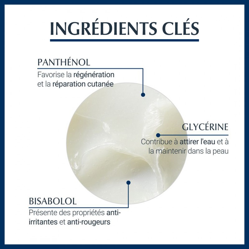 Formule INCI : Paraffinum Liquidum, Cera Microcristallina, Ceresin, Lanolin Alcohol (Eucerit), Panthenol, Glycerin, Bisabolol.