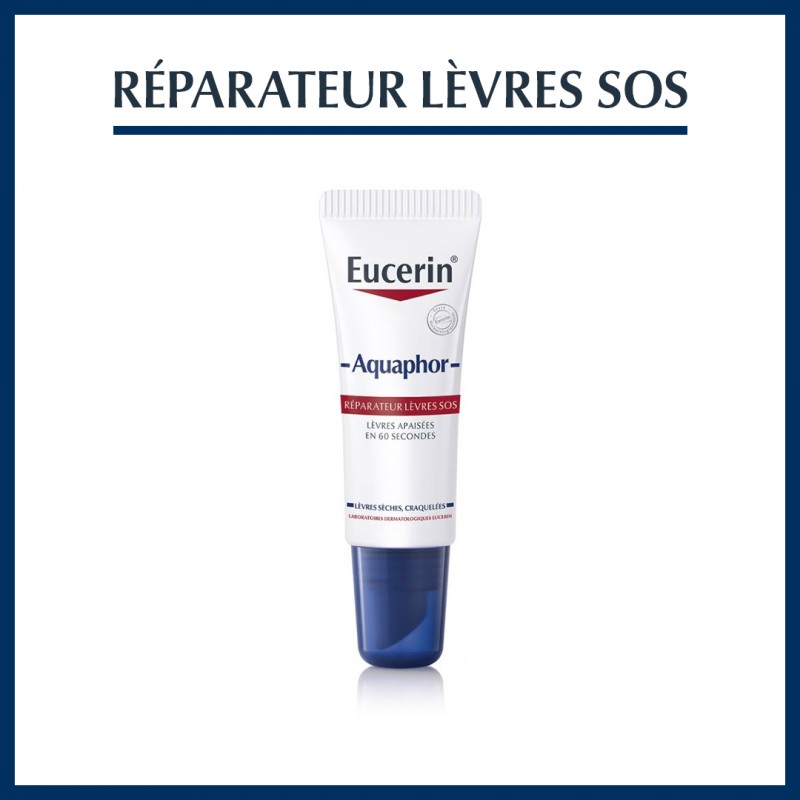Eucerin Aquaphor Réparateur Lèvres SOS apaise les lèvres en 60 secondes. Il est cliniquement prouvé pour réparer et apaiser les lèvres sèches, craquelées et crée une barrière de protection idéale. Ce baume à lèvres favorise la régénération rapide de la peau des lèvres, pour des lèvres douces et souples. Non parfumé et sans conservateur. Convient aux enfants de trois ans et plus.