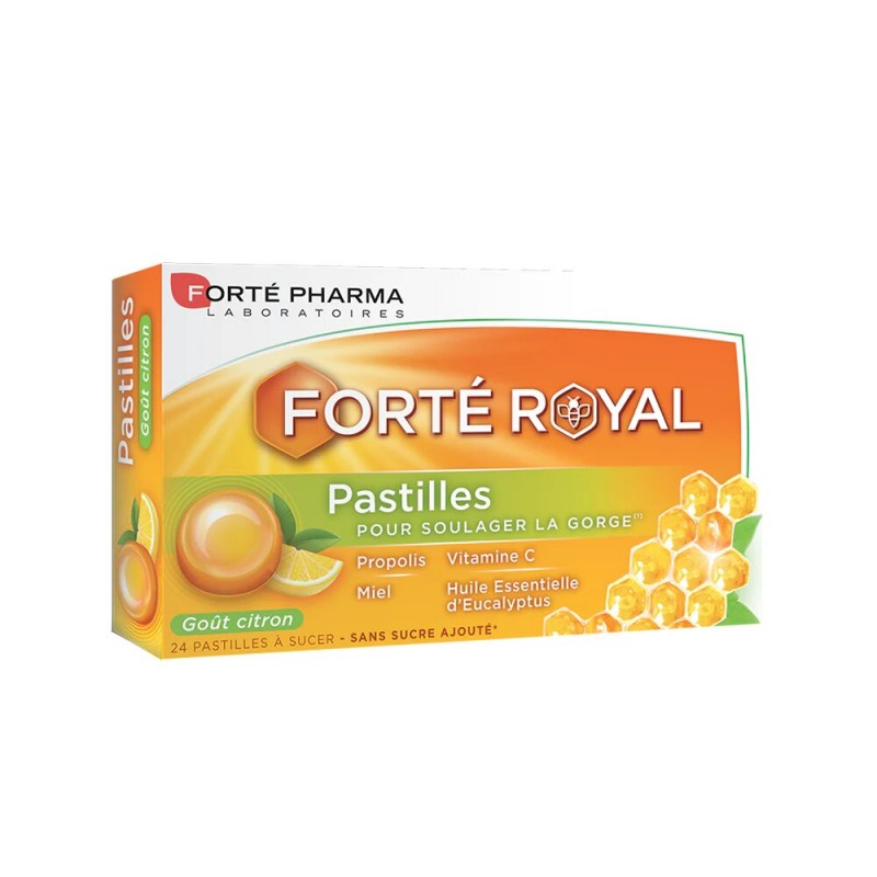 Riches en Vitamine C, nos produits Forté Royal Pastilles soulagent votre gorge naturellement.