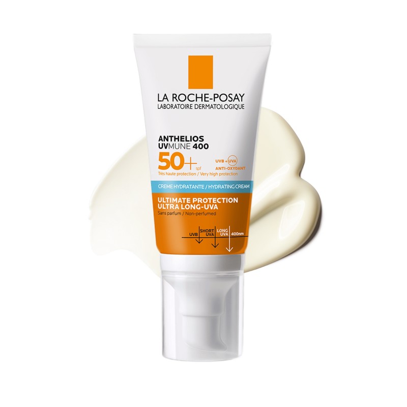Anthelios UVMune 400 SPF 50+ écran solaire, offre une très haute protection du visage contre les UVA et UVB pour les peaux sensibles, notamment celles souffrant d’allergies solaires.