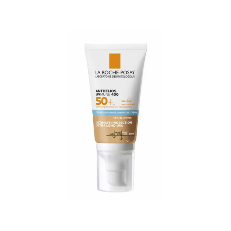 Anthelios UVMune 400 SPF 50+ écran solaire teintée qui offre une très haute protection du visage contre les UVA et UVB pour les peaux sensibles, notamment celles souffrant d’allergies solaires.