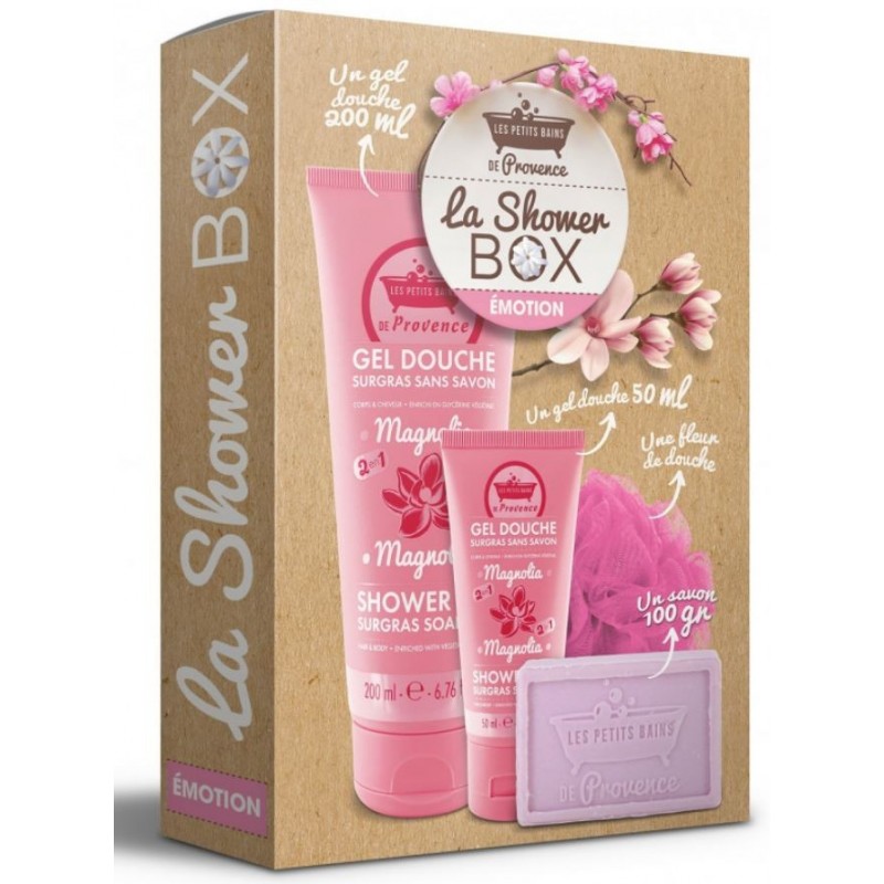 Les Petits Bains de Provence Shower Box Emotion Magnolia est un coffret de savon fabriqué en Provence avec des ingrédients naturels.