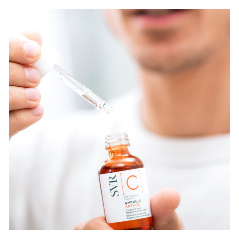 Le concentré éclat régénérant [C] Anti-Ox ABC de SVR révèle l’éclat du teint, réduit le signes de fatigue, tonifie, unifie et illumine.