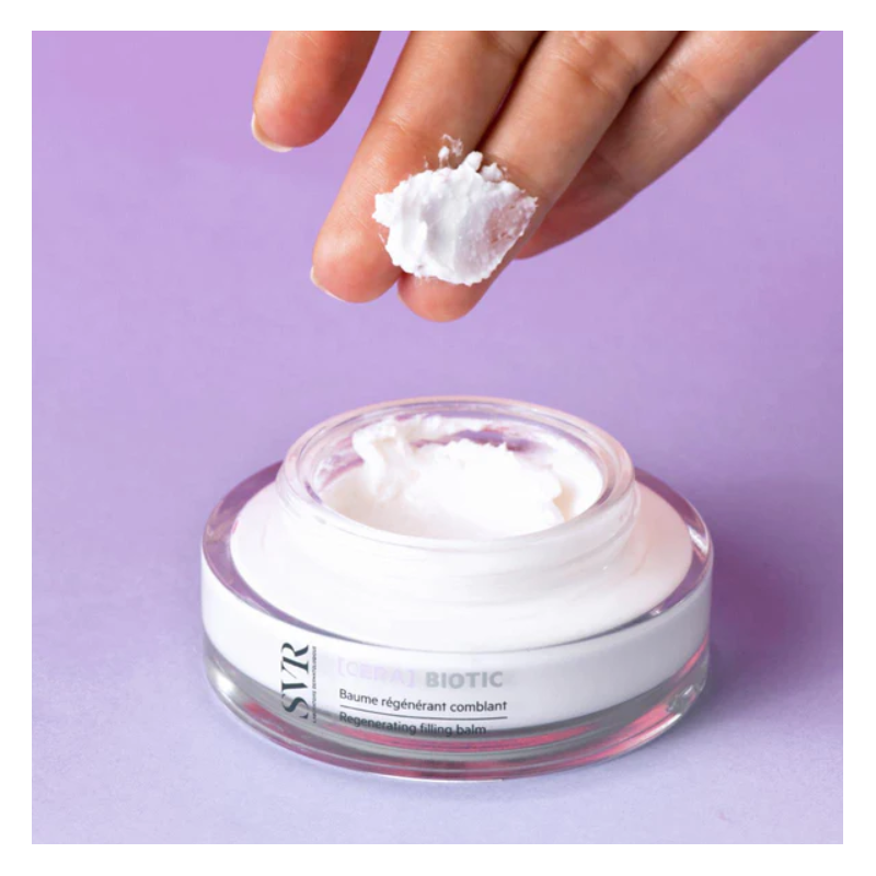 Si le microbiote cutané est déséquilibré, le vieillissement de notre peau est accéléré. Il faut donc la protéger. SVR apporte des PROBIOTIQUES PASTEURISES pour renforcer la barrière cutanée. Si nous avons choisi ces souches, c’est parce que le processus de pasteurisation qu’elles ont connu leur permet de conserver leurs propriétés probiotiques : renforcer et protéger la barrière cutanée tout en l’hydratant. La peau est alors prête à faire face aux agressions quotidiennes.