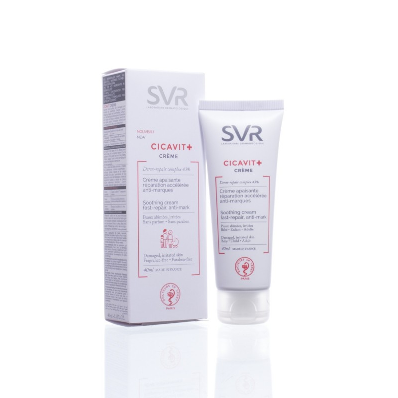La crème apaisante et réparatrice Cicavit+ des Laboratoires SVR, un soin spécialement conçu pour le visage et le corps afin de soulager et de rééquilibrer les peaux abîmées et irritées de toute la famille, bébé, enfant ou adulte. il accélère jusqu’à 7 fois la réparation cutanée pour débarrasser la peau des écorchures, gerçures, rougeurs du siège, échauffements ou encore les coups de soleil.