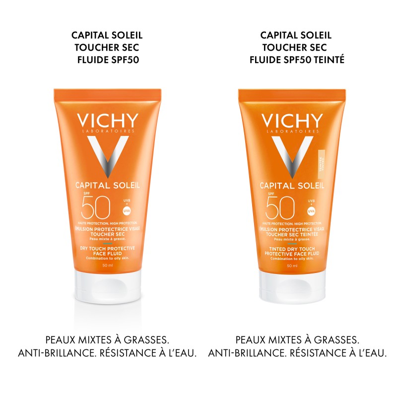 Vichy Capital Soleil Émulsion Anti-Brillance Toucher Sec SPF50 Peau Sensible Mixte à Grasse | 50ml