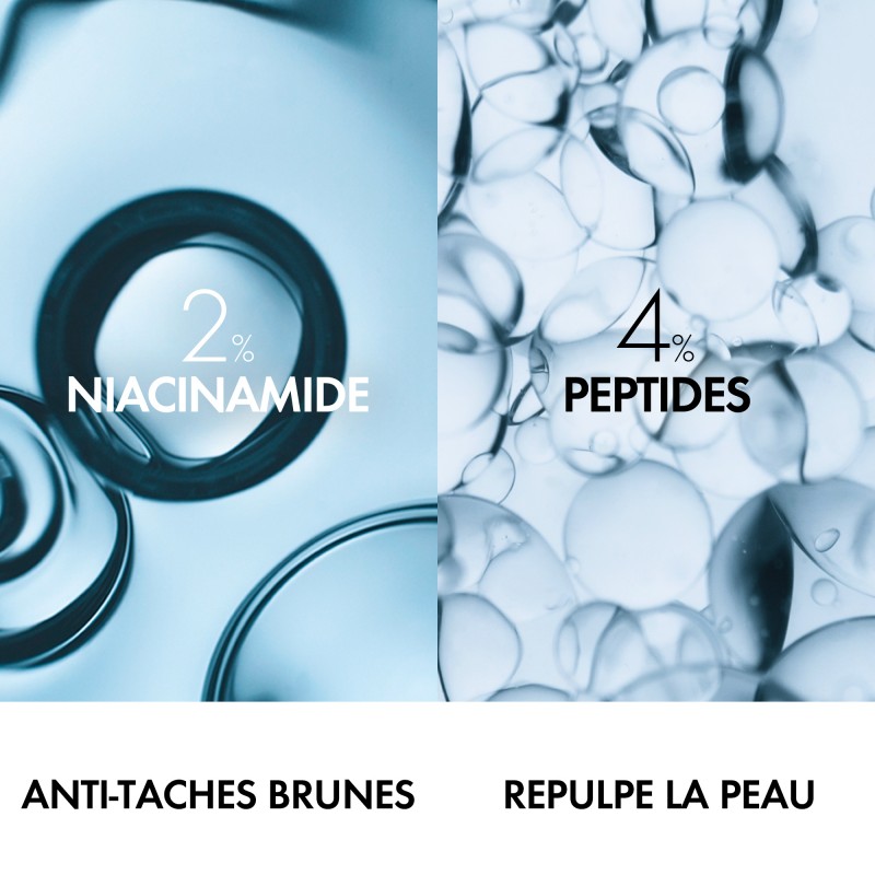 Dotée d’actifs anti-rides et anti-taches (4 % de peptides et 2 % niacinamide), la formule de ce fluide solaire anti-âge est cliniquement prouvée sur les signes du photovieillissement, dont les taches pigmentaires, les rides et le manque de fermeté.